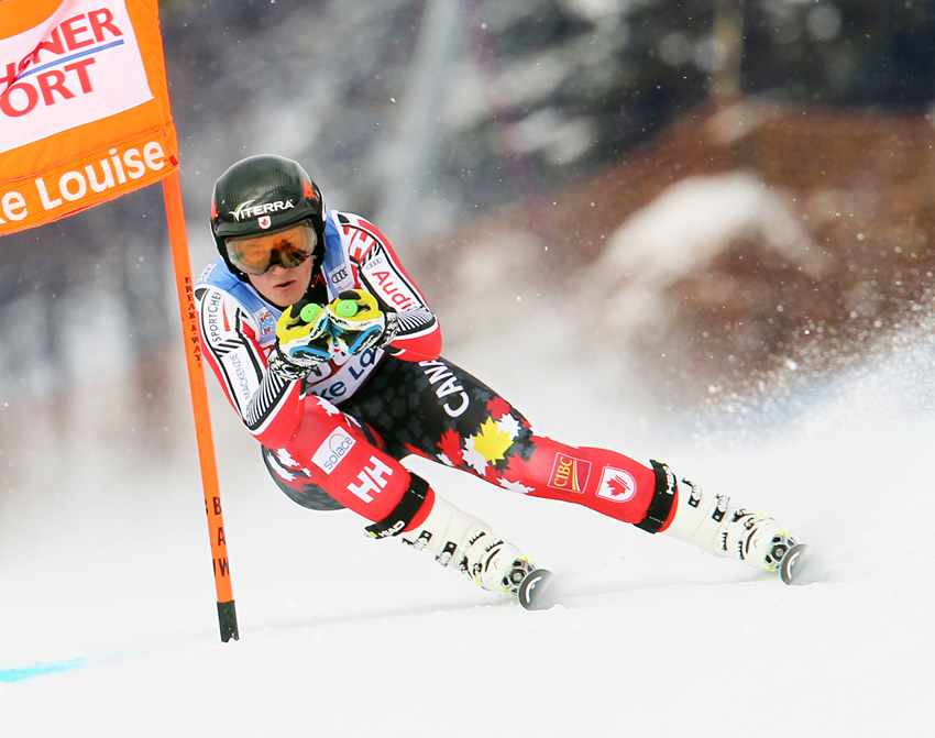 Erik had a design concept that we brought to reality with this Erik Guay Special Edition Race Suit. The slashes of yellow & the yellow Maple Leaf pay homage to the traditional yellow Canadian race suits Erik wore to many medals. ALL of his career podium finishes are superimposed into the background so you can wear Erik's ski racing excellence in your pursuit of your own ski racing history!!